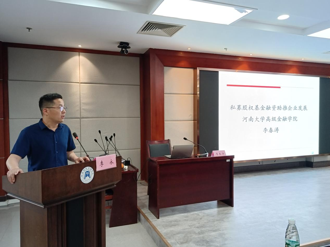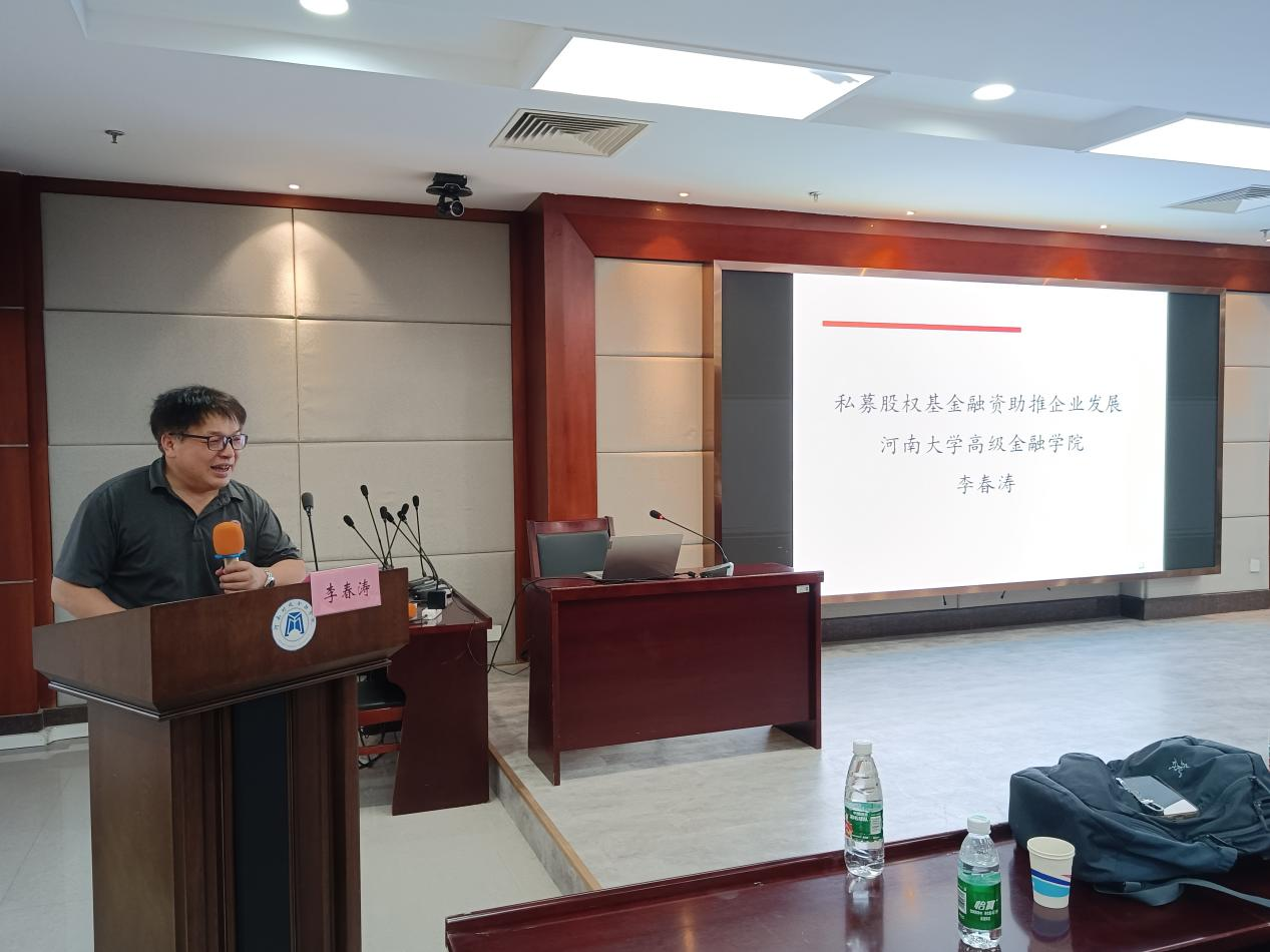 5月12日晚,申博SUNBET和经济与贸易公司邀请河南大学至善学者特聘教授、河南省特聘教授、博士生导师李春涛教授在象湖校区行知楼3136会议室做题为“私募股权基金融资助推企业发展”的学术讲座。讲座由申博SUNBET经理李永主持,讲座吸引了两院100余名师生参加。