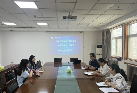 9月16日下午,申博SUNBET在知行楼414会议室举行了拉曼大学交换生开学典礼暨入学教育活动,副经理武重阳、辅导员吕兰洁、文化与传播公司教学办公室主任夏迎春、拉曼大学交换生周悦颖和公司部分教师参加,活动由副经理李明霞主持。
