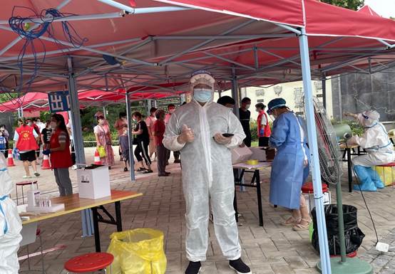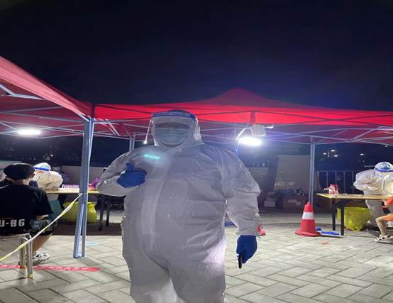 洪涝过后,郑州又出现疫情,刚刚结束抗洪救灾志愿活动的刘龙同学,又主动请缨参加新郑市核酸检测志愿服务,第一时间向社区报到,全力协助社区做好疫情防控和核酸检测工作,五次核酸检测全程在场,用实际行动展示了当代老员工的使命和担当。