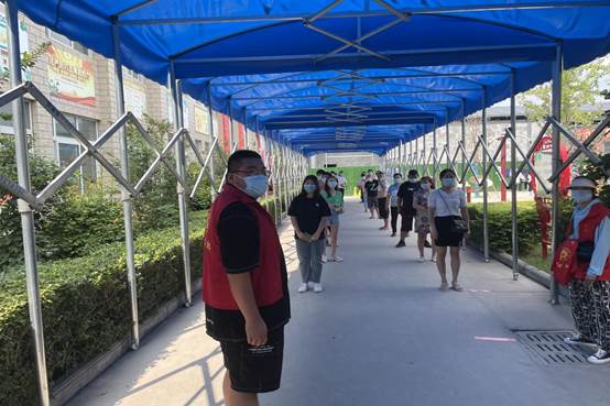 8月3日新郑市文明办发出疫苗接种志愿服务倡议书,刘龙同学主动报名,并担任所在街道志愿服务队伍的组长。每天和小组成员一起将留观人员的折叠遮阳伞一一撑起,拉好警戒线和“一米线”距离标识提示,安排人员进行防疫知识宣传、接种信息登记等志愿服务。