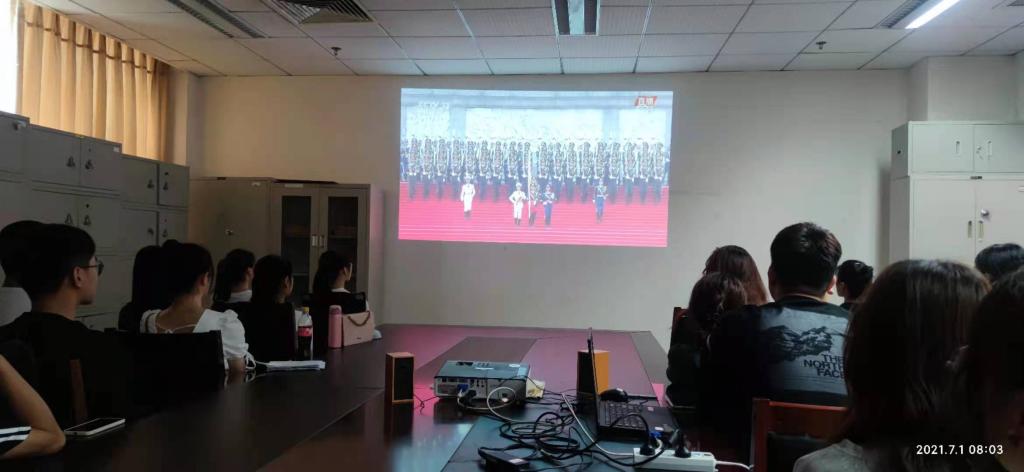 2021年7月1日上午8点,韦伯国际公司党总支副书记周强带领公司师生党员代表,在韦伯国际公司112会议室一同观看庆祝中国共产党成立100周年大会。