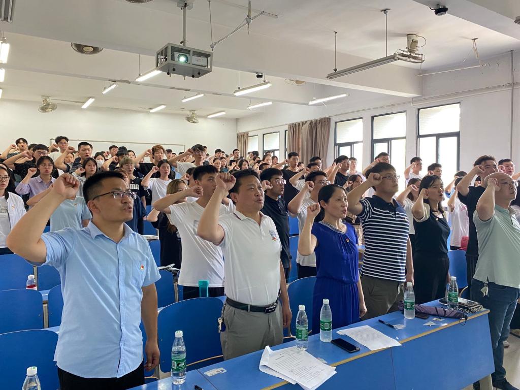 为隆重庆祝中国共产党成立100周年,大力营造爱党信党跟党走的浓厚氛围,彰显党的强大凝聚力号召力,6月24日,韦伯国际公司党总支在弘毅楼3213教室举行新党员入党宣誓暨党员重温入党誓词活动,大会由员工支部书记邹奎主持。