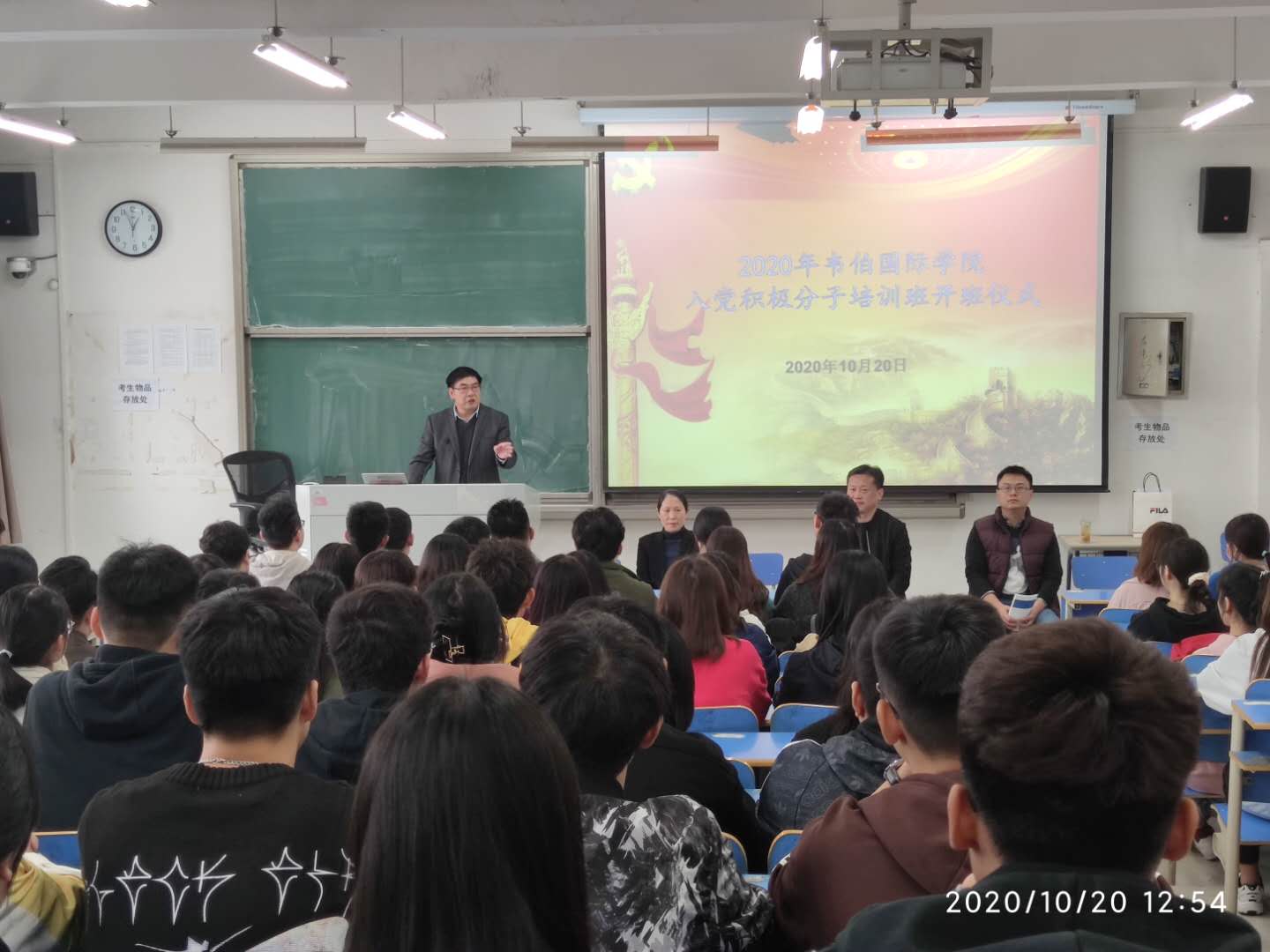 按照公司党委组织部2020年党建工作总体部署,为加强对入党积极分子的培养教育,提高入党积极分子的政治思想素质和理论水平,严把党员“入口关”,提高发展党员质量,韦伯国际公司党总支于10月20日——27日组织了韦伯国际公司2020年春、秋期入党积极分子培训班(因上半年受疫情影响,春期入党积极分子培训与秋期合班进行),韦伯国际公司党政领导班子成员出席培训开班式并分别进行授课,公司18级、19级的120余名积极分子参加培训。