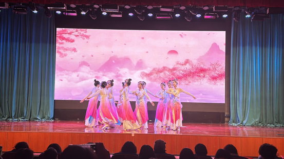古典舞《若梦》舞风空灵,舞者们身姿婀娜,通过细腻的肢体语言,编织出如梦如幻的情境,似在诉说着悠悠情思,舒缓的音乐与柔美的动作相得益彰,台下观众仿若身临其境,沉浸于这诗意氛围。