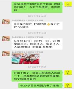 “只要有需要,我就肯定在。”公司团总支日常事务部部长刘蔓绪,在疫情期间,积极响应公司号召,全力投入到疫情防控中去,主动参与疫情值守工作。在值班点认真负责的完成校园疫情防控巡逻任务,永担青春使命,为打赢疫情防控战贡献自己的最大力量。作为一名员工干部,她讲担当、尽责任,疫情期间主动履职,将公司、公司防疫要求传达给同学们,做到令行禁止,是公司防控工作的得力助手。她说:“身为员工干部,这是我们的使命与担当。作为新时代青年,我们更应该不负韶华,争做有担当的时代青年。”