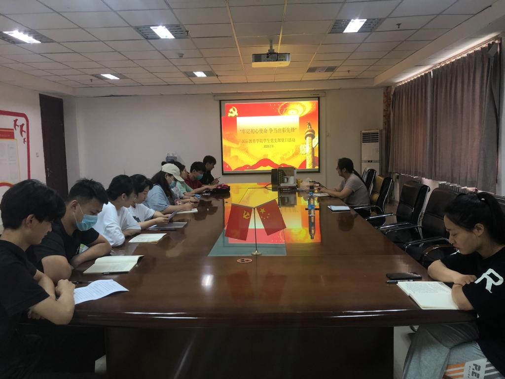 7月4日在知行楼414会议室,员工党支部全体成员通过钉钉线上平台与线下相结合的方式,召开“牢记初心使命、争当出彩先锋”组织生活会。会上,全体党员奏唱《国际歌》,观看《党课开讲啦》,每位党员进行个人发言,总结2020年上半年在新冠肺炎疫情防控过程中的思想动态及事迹,再次庄严宣誓,重温入党誓词。