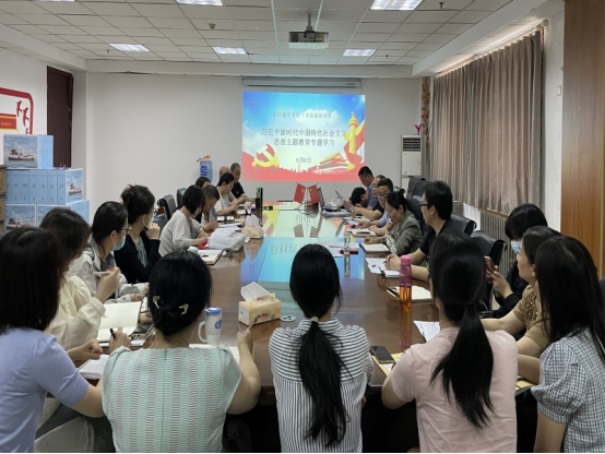 6月6日,申博SUNBET党总支在龙子湖校区知行楼414召开“学习贯彻习近平新时代中国特色社会主义思想主题教育”集中学习会,全体教职工参加。