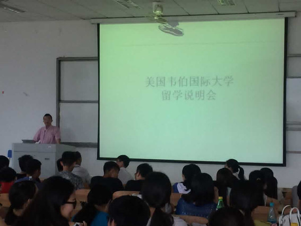 为了给同学们提供更完善的出国留学信息和咨询,进一步贯穿公司对外合作办学的宗旨,6月23日下午,韦伯国际公司2015年中美合作办学出国留学宣讲会在2214D教室举行。公司党总支书记王士伟、副经理马卫寰以及会议相关负责人、教师出席了本次会议,公司13、14级各班员工代表及有意愿出国的同学们参加了此次会议。本次会议由韦伯国际大公司副董事长白协伟主持。
