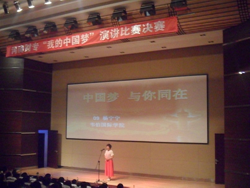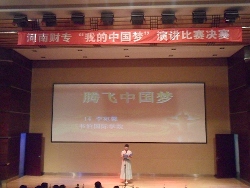 经过初赛、复赛选拔,共有18位来自全校各系(院)的选手参加了本次比赛的决赛。评委由各系(院)团总支书记担任。从《中国梦·梦起航》到《腾飞中国梦》再到《我心有梦·梦有中国》,每一名参赛选手都用真情诠释了自己浓烈的爱国情感,用真心表达了自己为实现“中国梦”而奋斗的决心。选手们精彩的演讲和表现,令现场观众热情高涨,掌声不断。经过激烈的竞争,公司选手12级国会一班的杨宁宁和12级会计四班的李宛馨以富有感染力的精彩表现取得了现场评委观众的一致好评,最终分获三等奖和优秀奖。