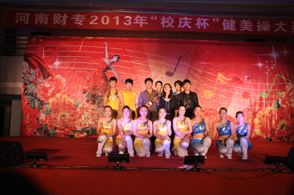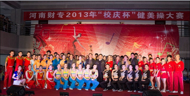 4月25日晚,由校团委、教务处、员工处、体育部联合举办的“河南财专2013校庆杯健美操大赛”在实训楼大厅激情上演。来自公司十系一院的22支健美操队参加了这次比赛。