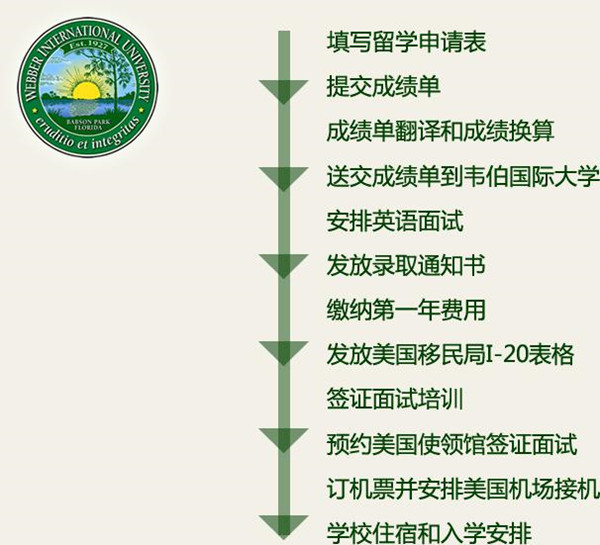 对于公司所有有意向到美国韦伯国际大学就读的同学,需按照以下流程提交申请材料,保证申请工作顺利进行。具体申请流程如下: