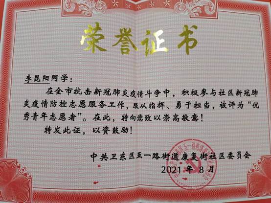 暑期参加志愿服务活动获得表扬信或者荣誉证书的同学名单如下: