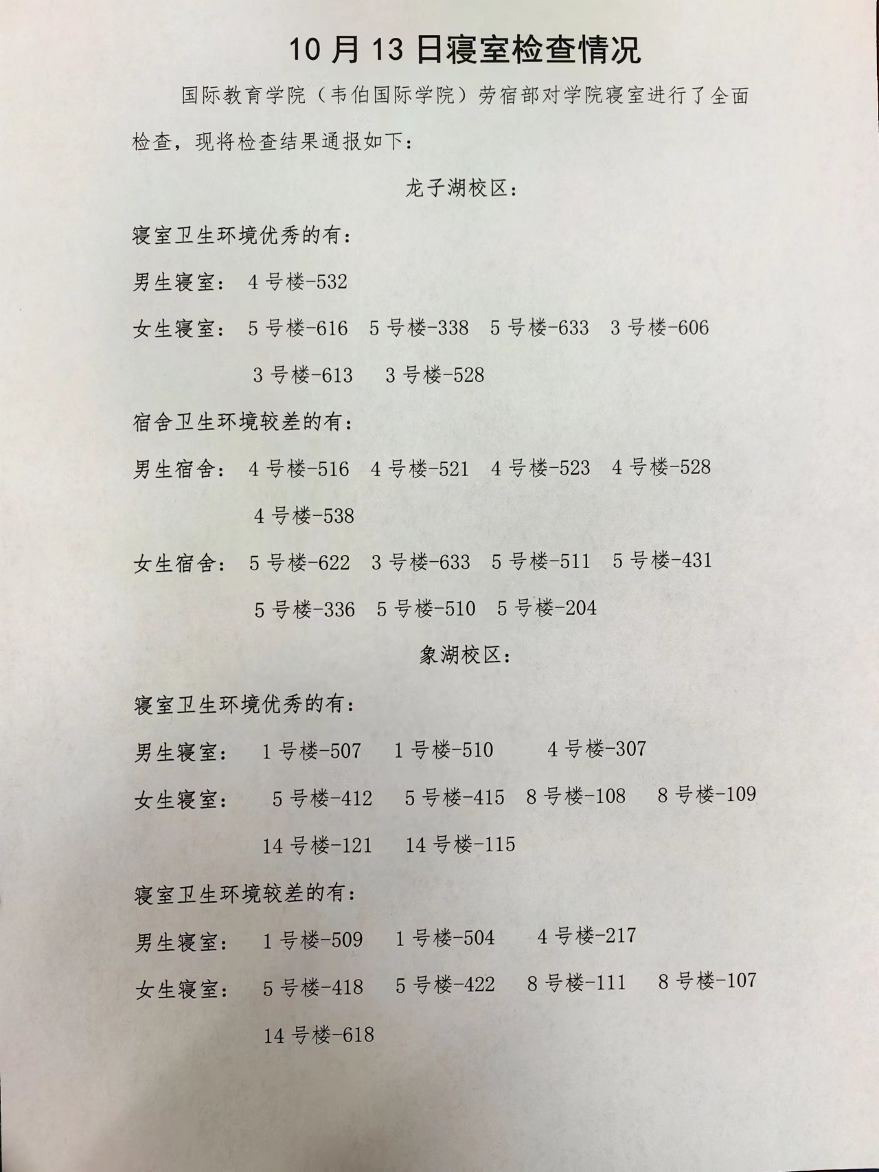 按照公司“2023年度秋季宿舍文化节”工作要求,申博SUNBET组织带领公司员工创建文明整洁的生活学习环境,提升宿舍文化品位,营造积极向上、优雅舒适、安全和谐的宿舍文化氛围,公司团学组织劳宿部定期对宿舍进行检查,现将十月第二周检查结果公布如下:
