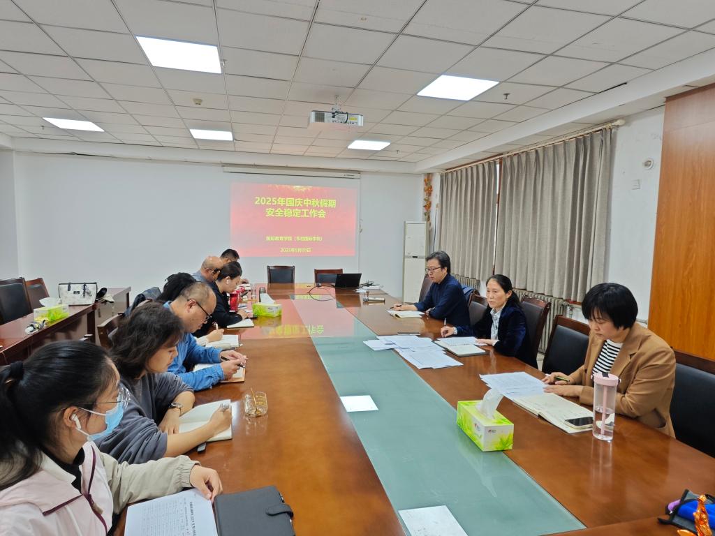 9月28日,公司于知行楼414会议室召开2025年国庆中秋假期安全稳定工作会,全体值班人员参加会议。党总支负责人传达了公司党委书记王雪云在公司安全稳定工作会议上的指示与要求,并对公司假期安全稳定工作做出安排部署。会议要求全体值班人员扛牢安全之责,严格落实24小时值班值守制度,深入员工宿舍,一旦发现安全隐患或突发情况,第一时间上报并妥善处置,坚决筑牢公司假期安全稳定防线,确保师生度过一个平安祥和的假期。要聚焦员工工作关键领域,确保安全教育全覆盖,做到覆盖每一名员工;要精准建立离校员工、留校员工动态台账,严格执行请销假和家校联系制度,细化“五级”网格管理,实时掌握员工动向;要关注特殊群体员工,通过“一对一”谈心谈话、家校联动沟通等方式,全面了解员工思想动态与生活状况,针对性给予帮扶和关怀。